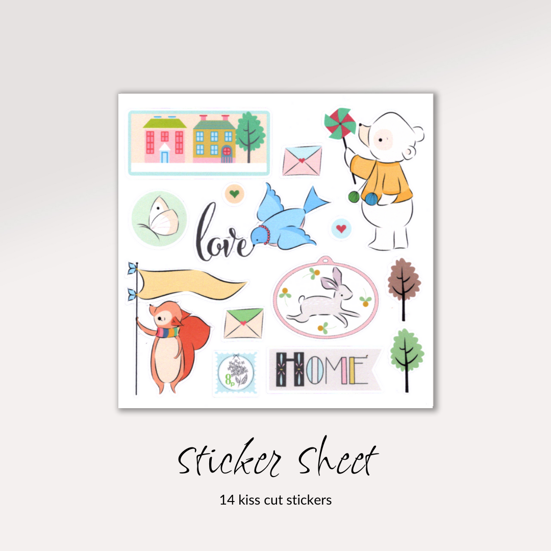 The Gentleness Collection was designed around that poingant moment of being where friends know they are seen and heard. It comes with a delicious sticker sheet of fourteen kiss cut stickers with which to pepper envelopes and interiors.